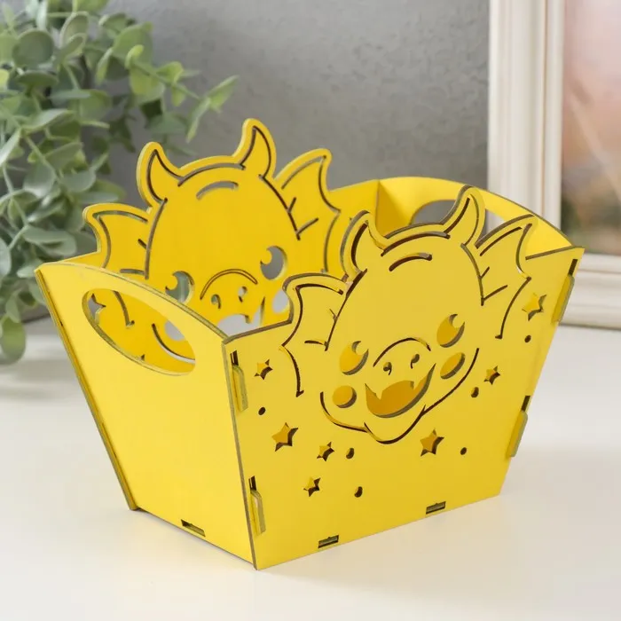Корзинка-шкатулка "Мордочка дракона" жёлтый 18х12х14,5 см (набор 5 деталей)