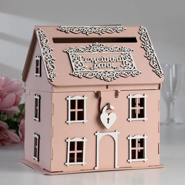 Шкатулка подарочная «Семейный банк для сбора денег. Дом», 24.5×24×28 см, белый-пудровый