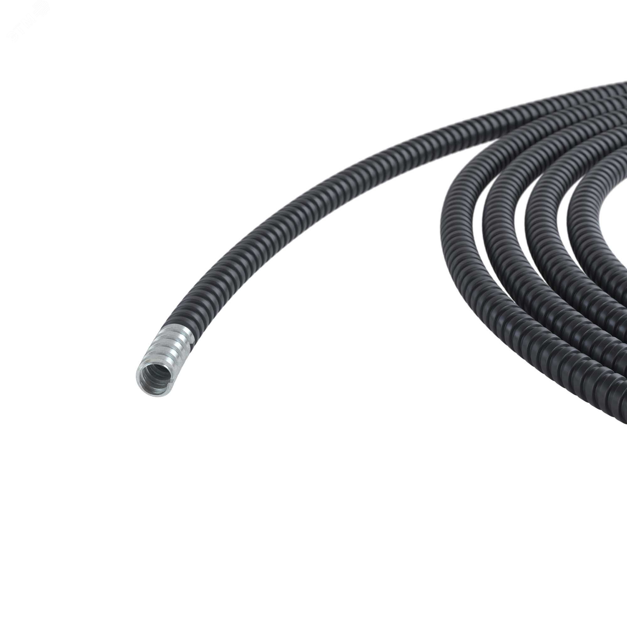 Металлорукав DN 10мм в герметичной ПВХ изоляции, Dвн 10,0 мм, Dнар 14,0, с протяжкой, 100 м, цвет чёрный