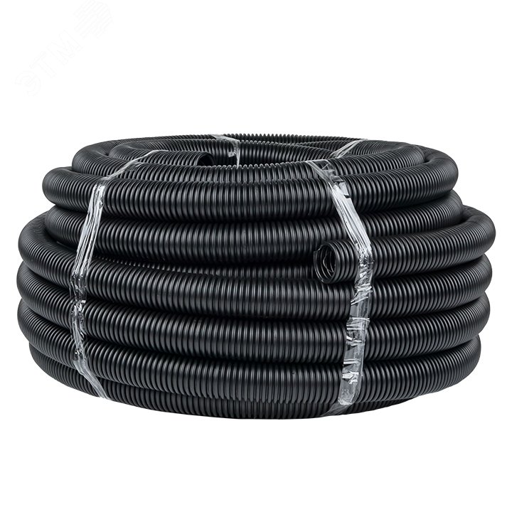 Усиленная двустенная труба ПНД гибкая для кабельной канализации д.110мм без протяжки, SN15, 750Н, в бухте 100м, цвет черный