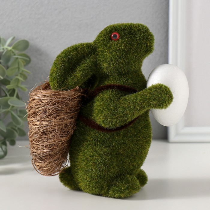 Фигурка пенопласт «Кролик зелёный с яичком и корзиной с морковью», 15×7×15.5 см