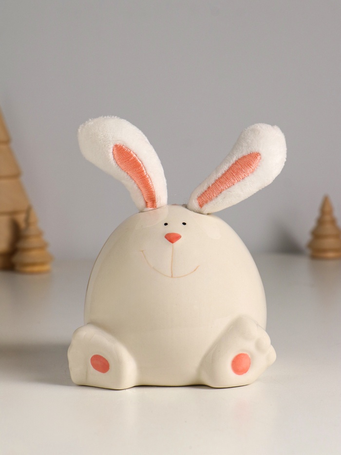 Фигурка керамика, текстиль «Зайчик в форме яйца», белый, 7.2×7.2×12.5 см