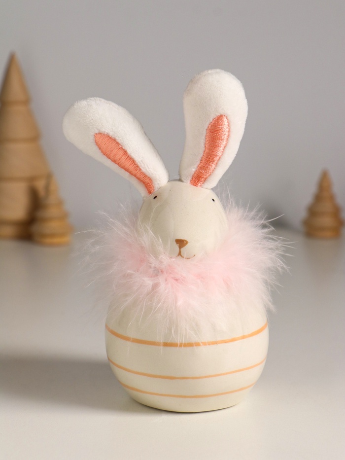 Фигурка керамика, текстиль «Зайчик с пухом, круглый», 7.4×7.4×15.5 см