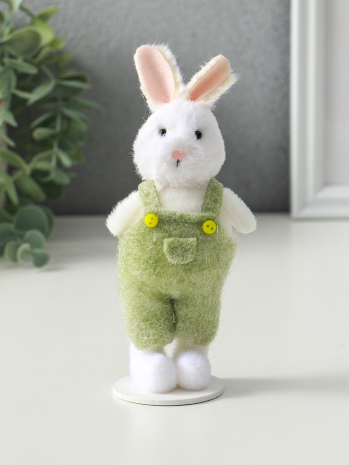 Фигурка «Белый зайчик в зелёном комбинезоне», 4×6×15 см
