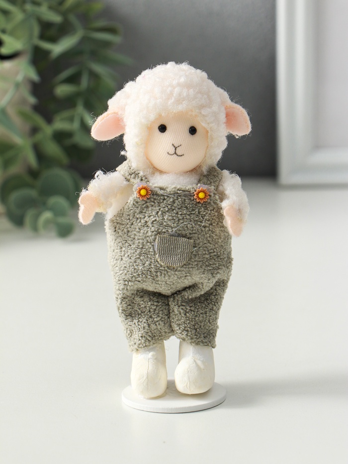 Фигурка «Белый барашек в зелёно-сером комбинезоне», 4×6.5×13 см