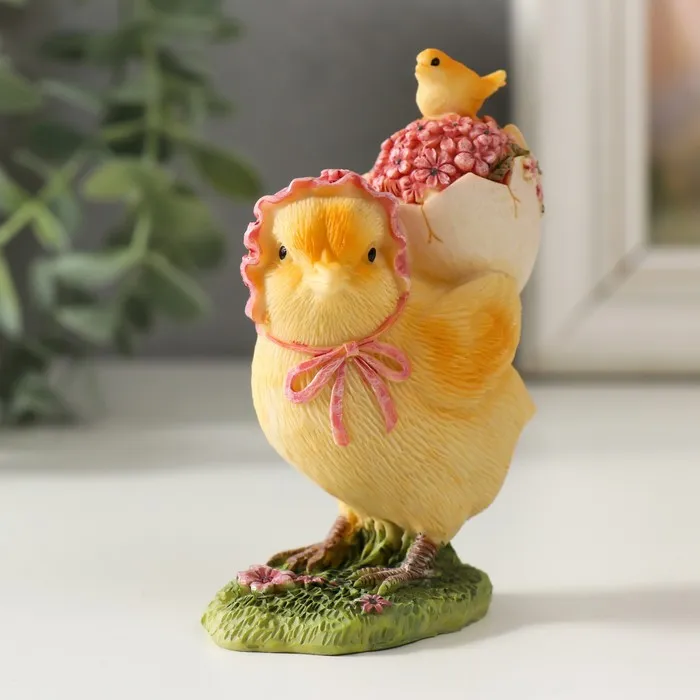 Фигурка полистоун «Курочка в чепчике, несет цыпленка в скорлупе с цветами», 6.5×4×9 см