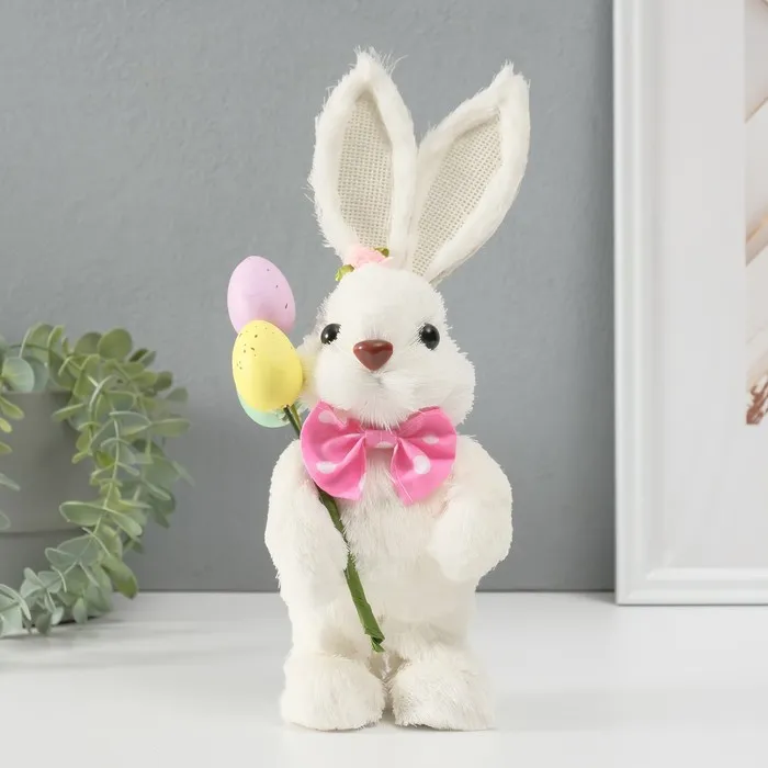 Фигурка «Белая зайка с розовым бантом и пасхальными яйцами», 12×12.5×25 см