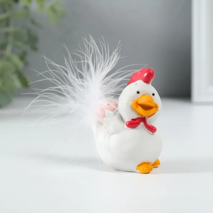 Фигурка полистоун «Петушок белый с розовым яйцом», 5×4×6.5 см