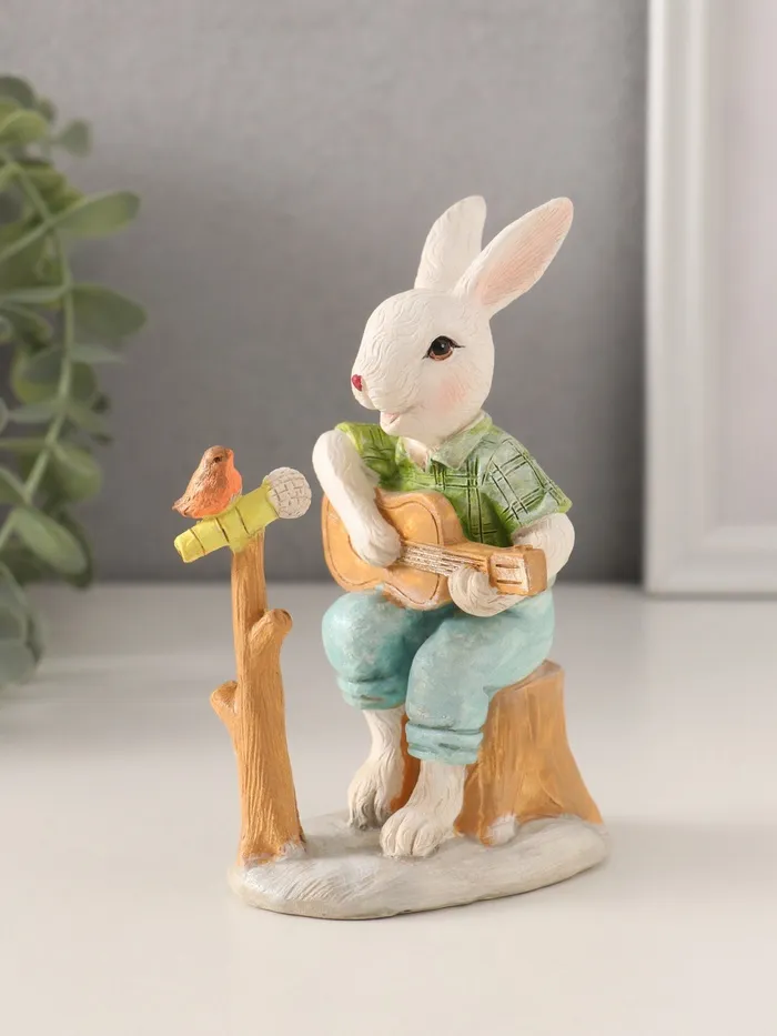 Фигурка полистоун «Зайчик играет на гитаре для птички», 8.5×6.5×12 см