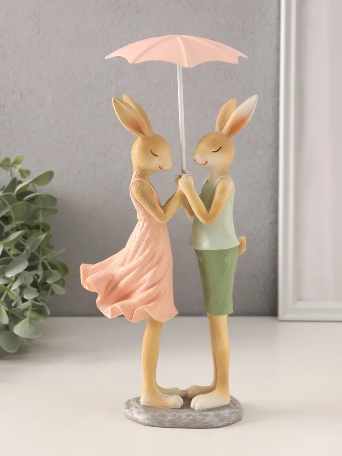 Фигурка полистоун «Романтика. Кролики под зонтом», 12×9.5×25.5 см