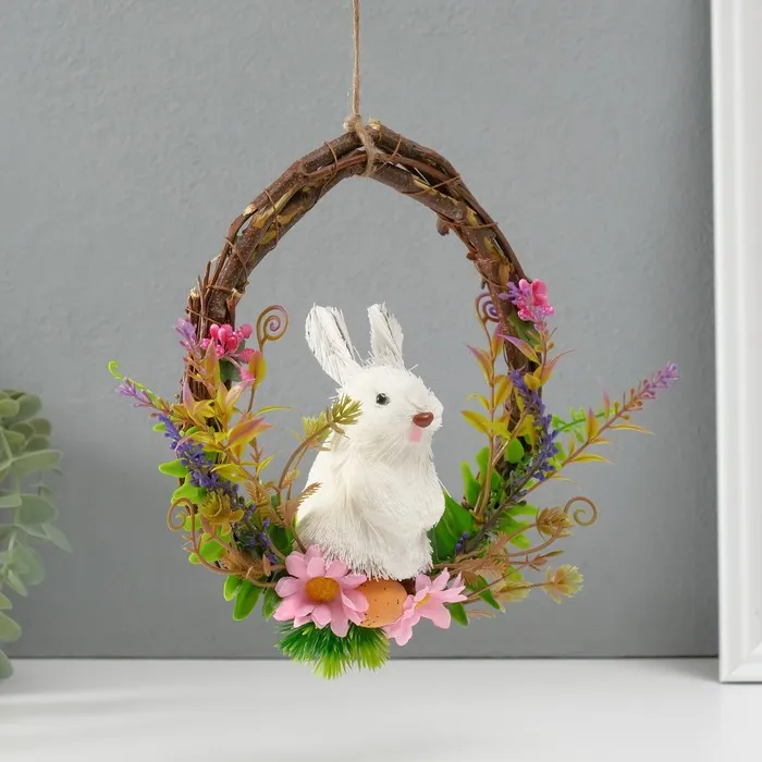 Фигурка «Белый зайка в венке с цветами», 17.5×7.5×19.5 см