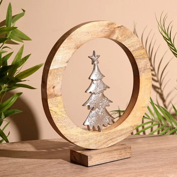 Сувенир интерьерный в деревянном кольце «Ёлка», 30×8×33 см