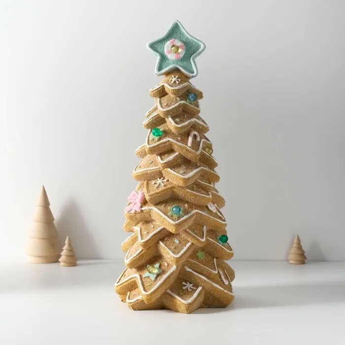 Фигурка полистоун «Ёлочка из пряников с новогодними украшениями и звездой», 15×15.5×34.5 см