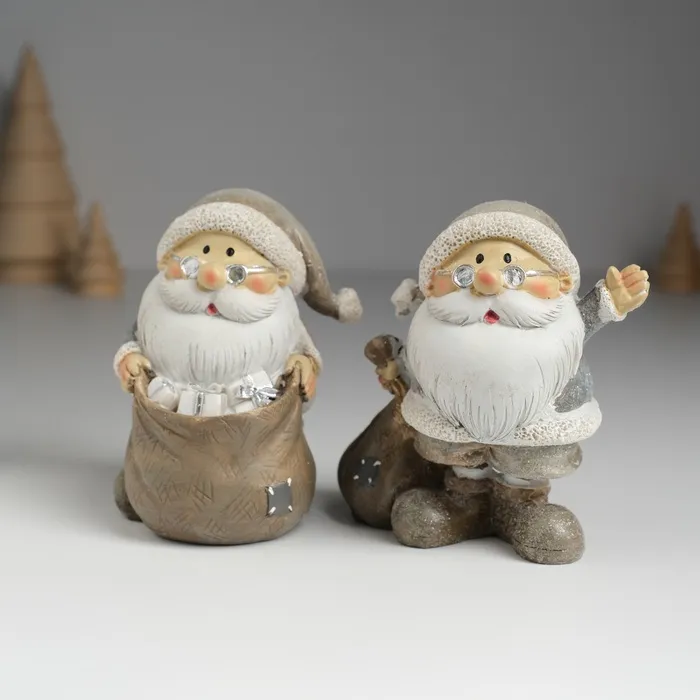 Фигурка полистоун «Дед Мороз в серой шубе в очках, с мешком подарков», 5.5×6×9 см, МИКС