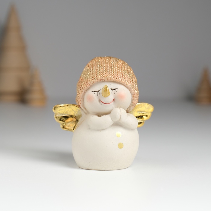 Фигурка полистоун «Снеговик в золотистом вязанном колпаке, с крылышками», 6×4×7.5 см