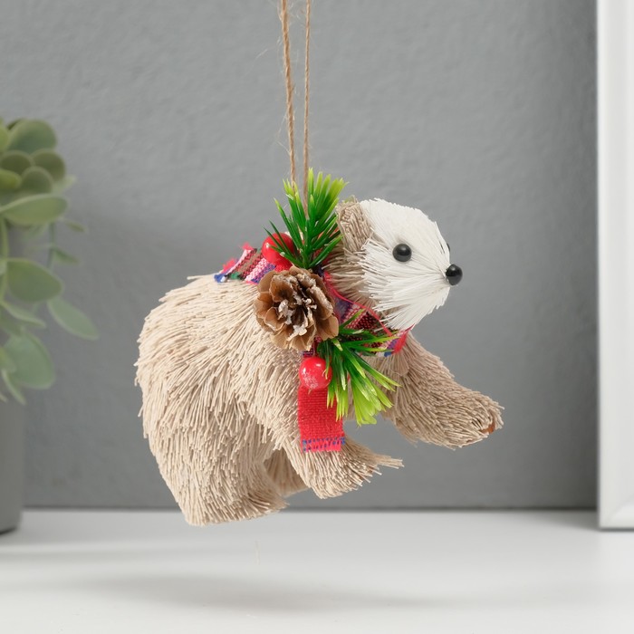 Фигурка-подвеска новогодняя «Мишка с ёлочным венком на шее», 11.5×5.5×8 см