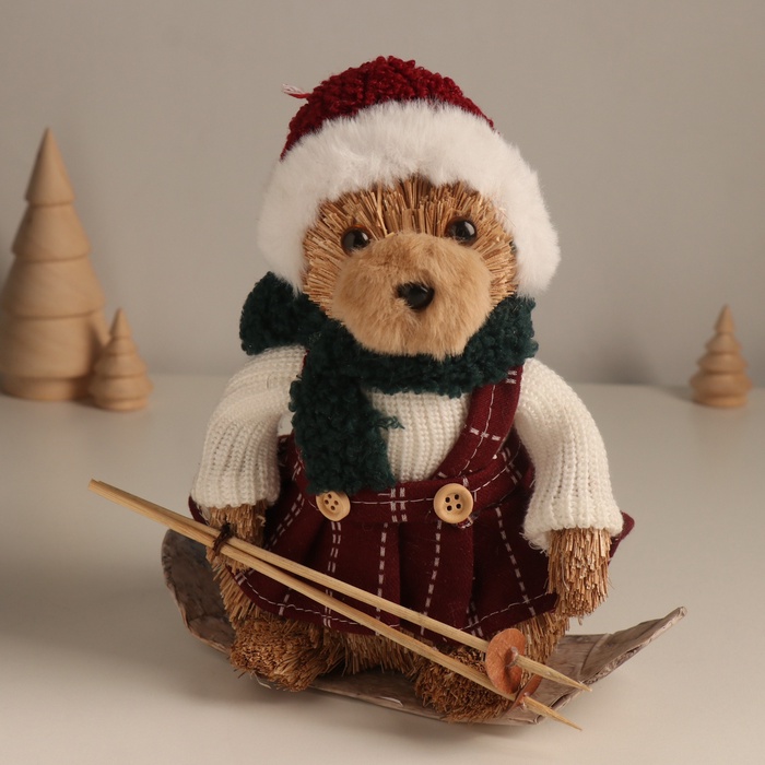 Фигурка новогодняя «Мишка в зимнем сарафане на лыжах», 20×19×11.5 см