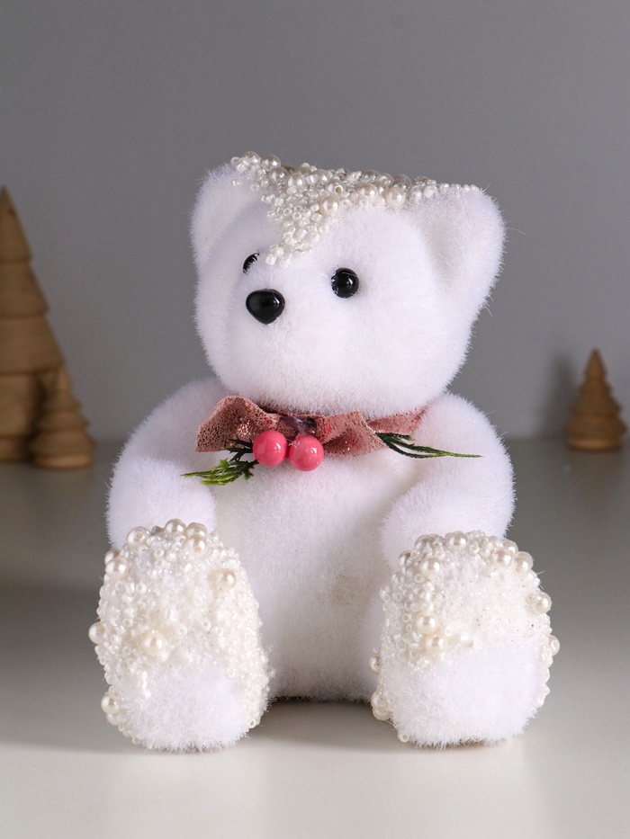 Фигурка «Белый медвежонок с еловым бантом, в бусинках», 16×12×14 см