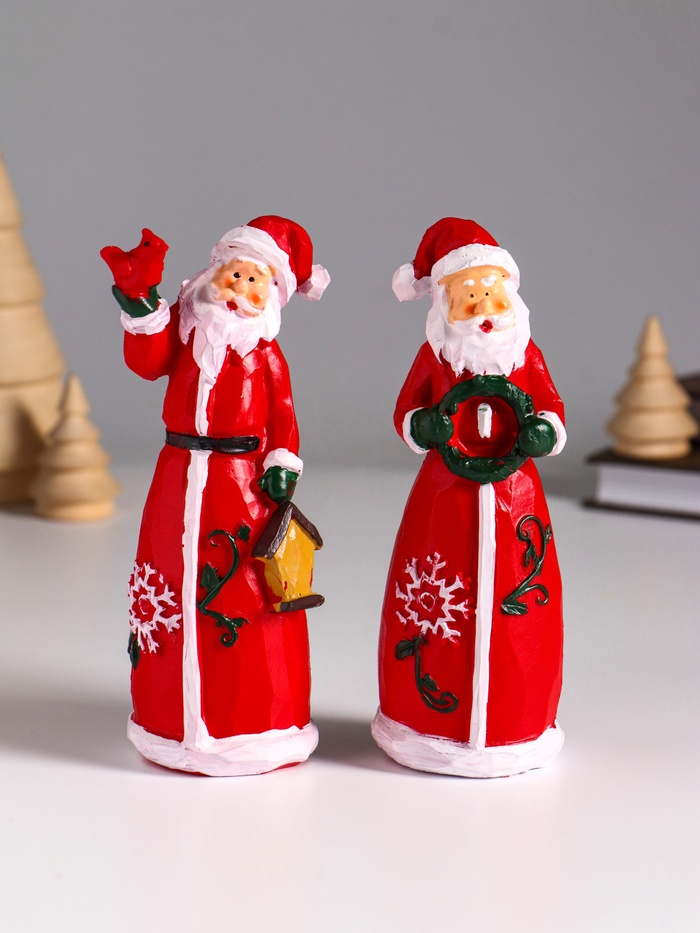 Фигурка полистоун «Дед Мороз в красном кафтане с венком или домиком», 5×4.5×14 см, МИКС