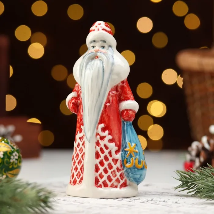 Фигурка «Дед Мороз с мешком в красной шубе», 14 см, фарфор