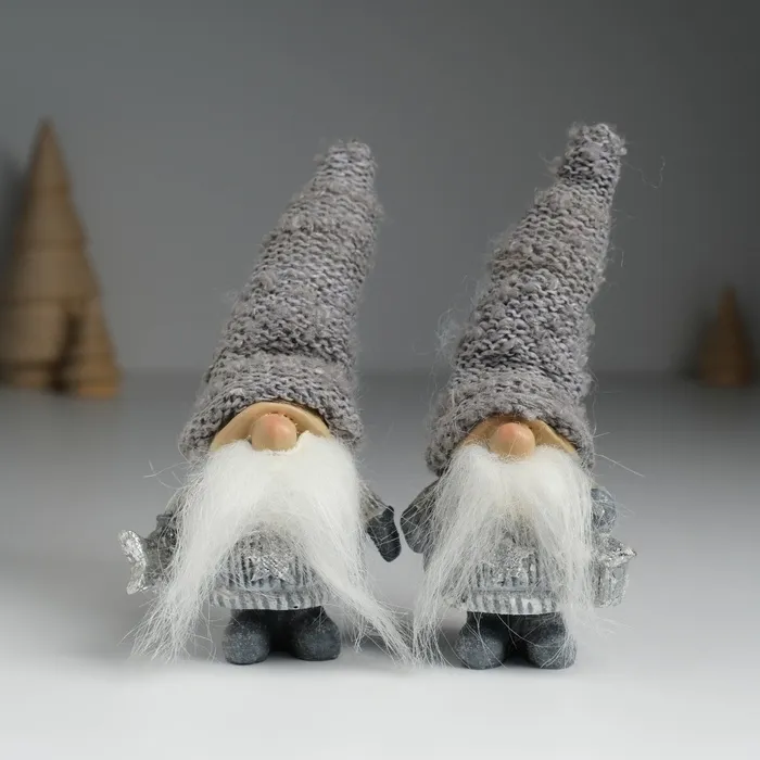 Фигурка полистоун «Дед Мороз в сером вязанном колпаке, со звездой», 5×3.5×13 см, МИКС
