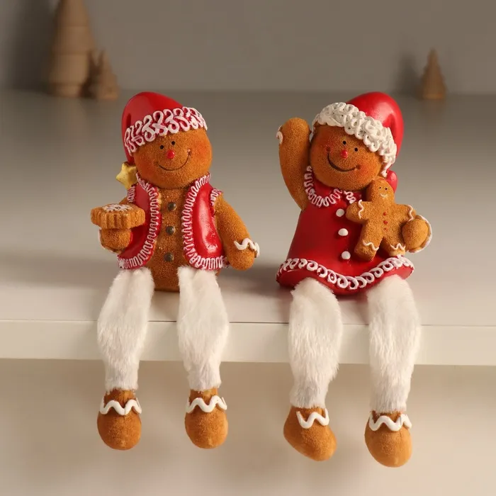 Фигурка полистоун «Имбирный снеговик в новогоднем наряде», длинные ножки, 7.5×6×17 см, МИКС