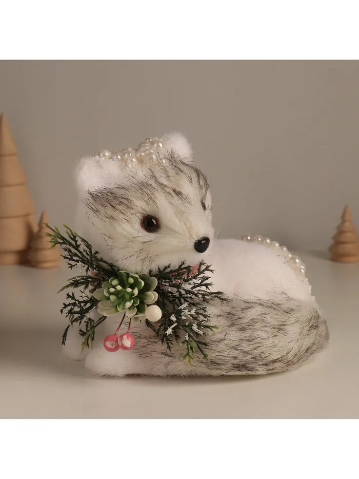 Фигурка «Белая лисичка в бусинках», 15×17×13 см