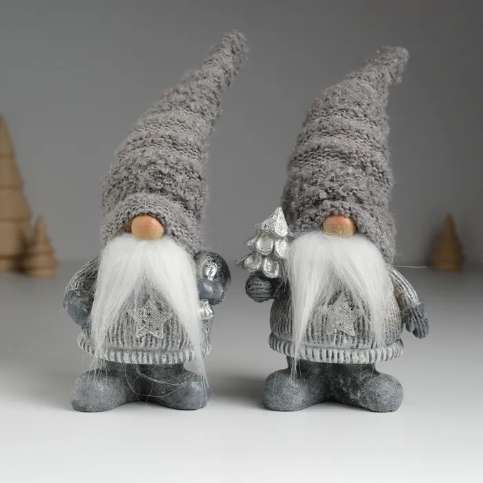 Фигурка полистоун «Дед Мороз в сером вязанном колпаке, с белой бородой», 8.5×5×18 см, МИКС