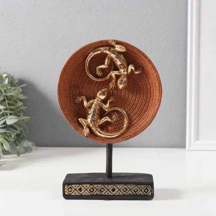 Фигурка полистоун «Две ящерицы на плетёном круге», золото, 5×12×20.5 см