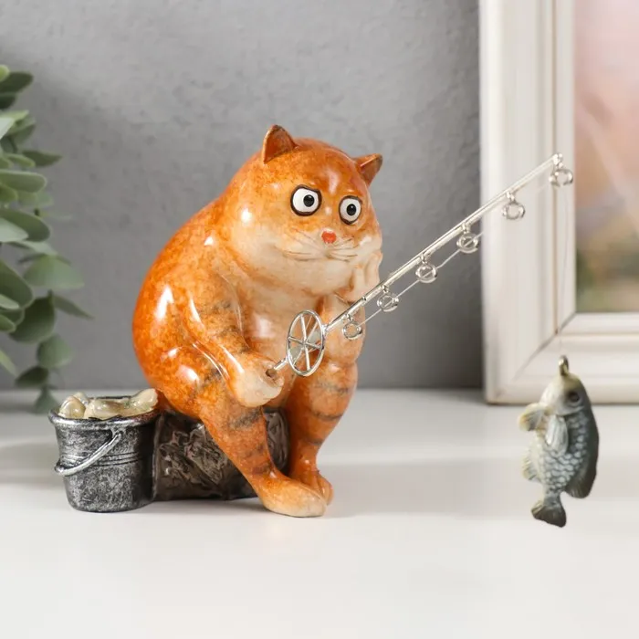 Фигурка полистоун лак «Рыжий кот на рыбалке», 12.5×10×18 см