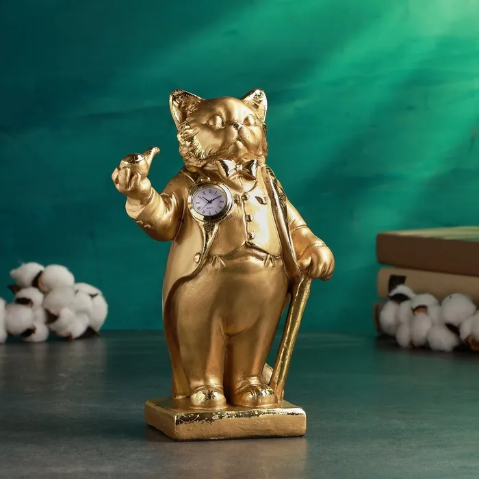 Фигурка-часы настольные «Кот во фраке с трубкой», 32×20×14 см, бронза с позолотой