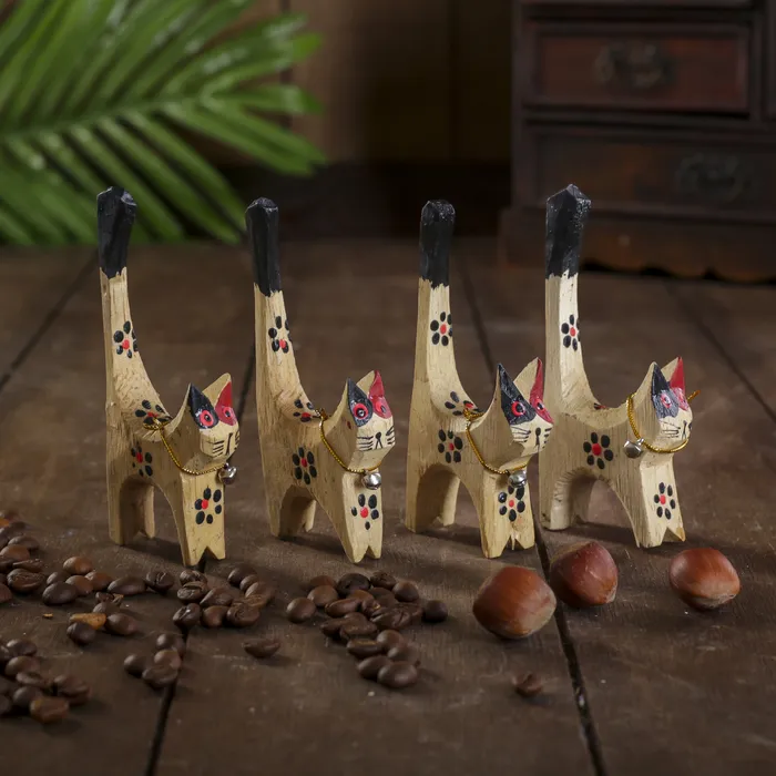 Сувенирный набор «Кошечки в черный цветок под кольца», 7×5×10 см, дерево