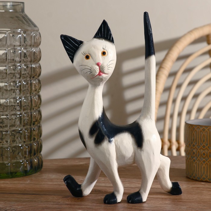 Сувенир «Кошечка», 17×27×7 см, белый с чёрным, дерево
