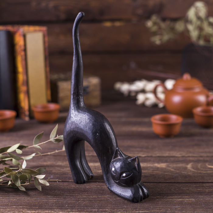 Сувенир дерево "Кошка под кольца черная выгнутая" 15х3х25 см