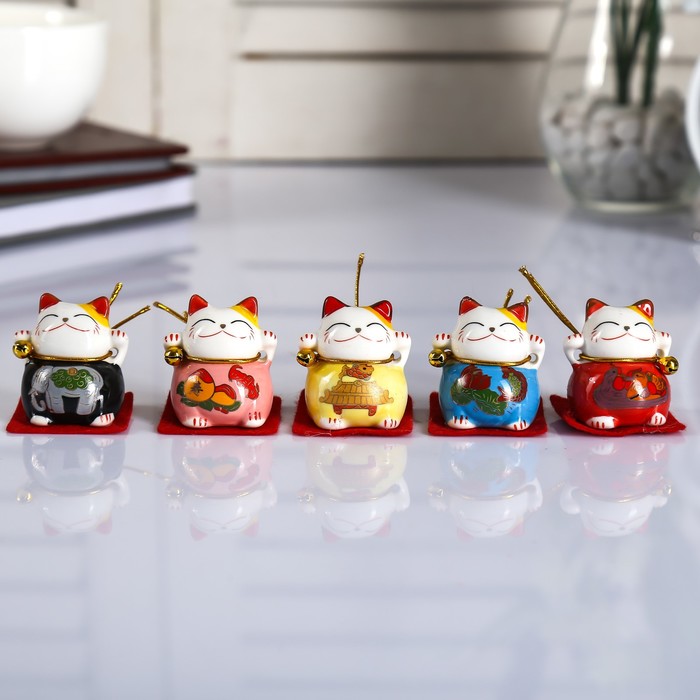 Набор фигурок керамика «Манэки-нэко с рисунком, на коврике», 5 шт., 4×4×3.5 см