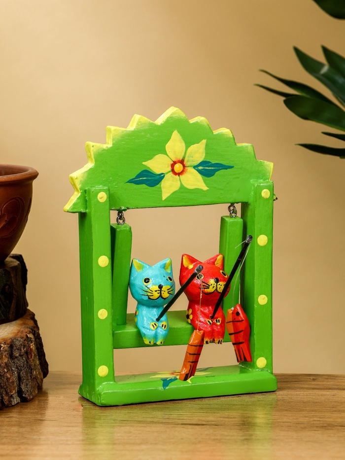 Сувенир "Котята на качелях" дерево 10х3,5х15 см, цв. зелёный