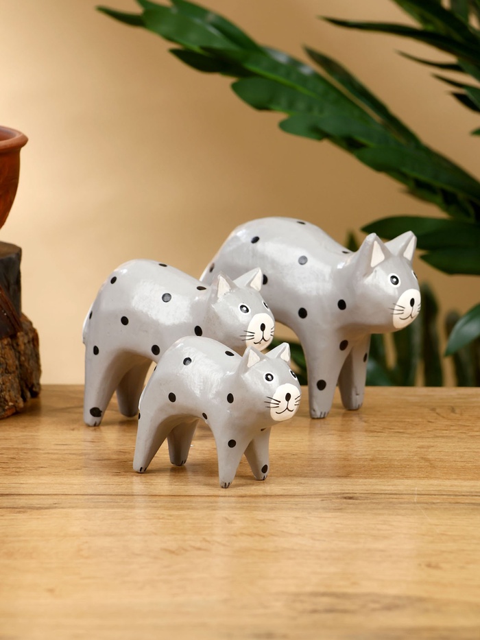 Набор сувенирный «Кошки», h=9 см, h=8 см, h=6.5 см, дерево, серый