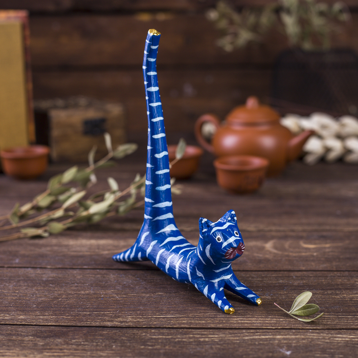 Сувенир дерево "Кошка синяя под кольца" 13х3х14 см