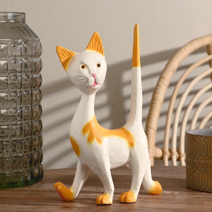 Сувенир «Рыжая кошечка с длинной шеей», 10×15×50 см, дерево