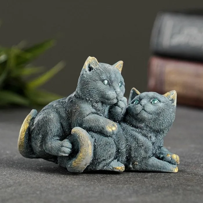 Фигурка гипс «Кошачья дружба», серо-голубой, 6×8×5 см