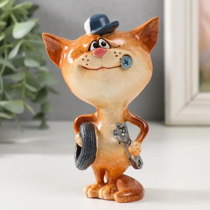 Фигурка полистоун лак «Котик шиномонтажник», 8×5.8×12.8 см