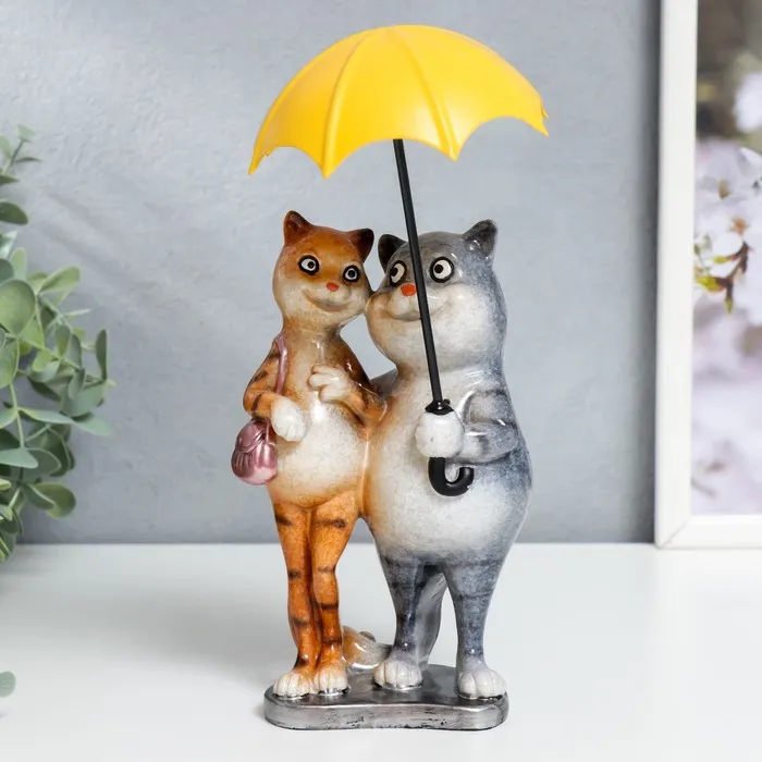 Фигурка полистоун лак «Котики. Прогулка под зонтом», 21.5×10×11.2 см