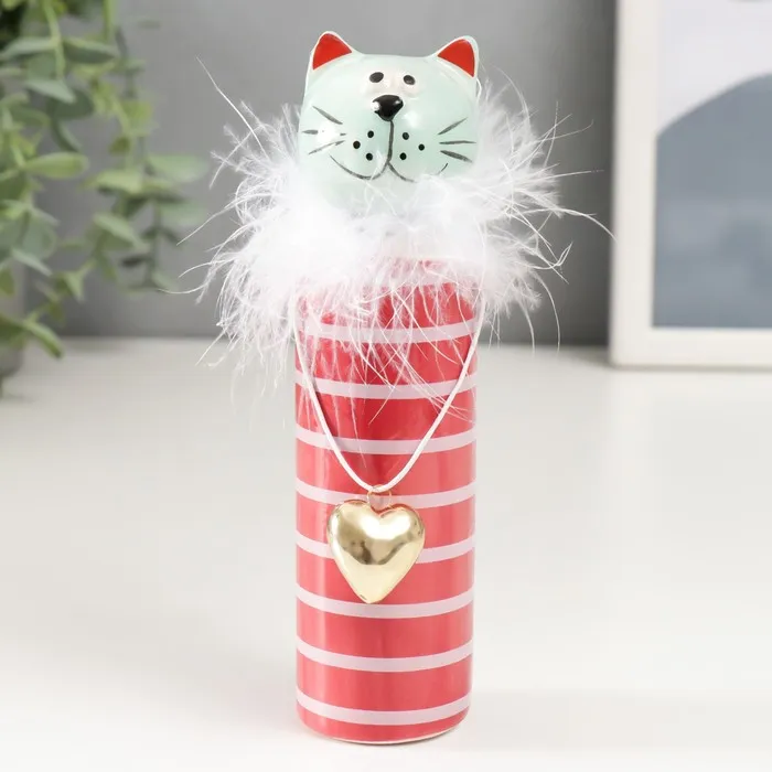 Фигурка керамика «Кошечка в мехах с золотым сердечком», мятно-красный, 4×4×15.5 см