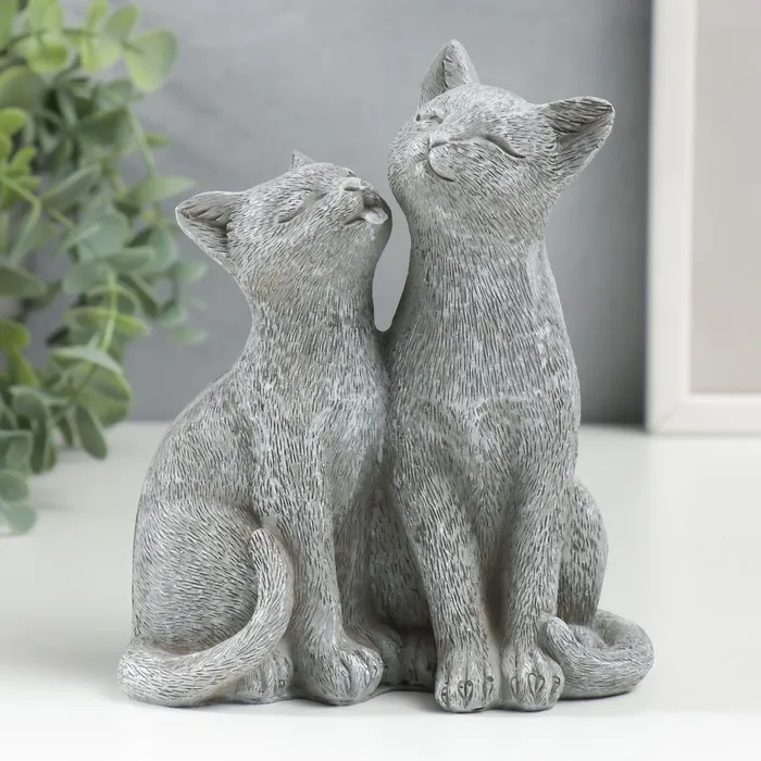 Фигурка полистоун «Кот и кошка: умывание», серый, 15×8×13 см