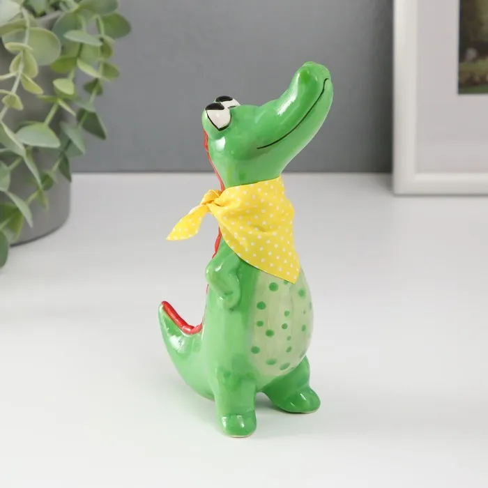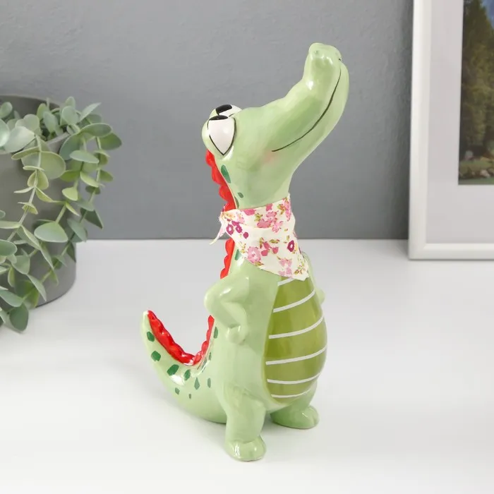 Фигурка керамика «Крокодил с косынкой», ярко-зелёный, 9.3×6×16.3 см