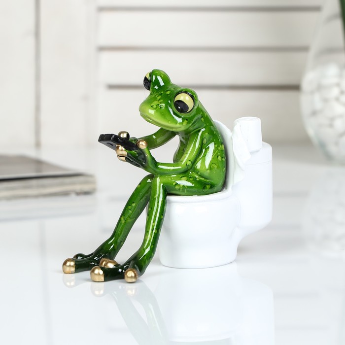 Фигурка полистоун лак «Лягушонок на унитазе с телефоном», 12.5×8×11 см