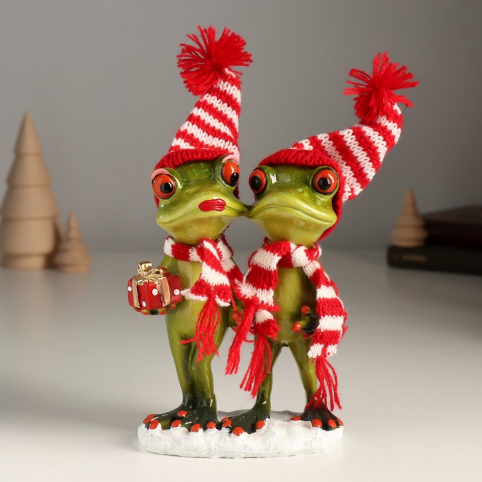 Фигурка полистоун лак «Две лягухи в шапочках и шарфиках с подарком», 10.5×5.5×19 см