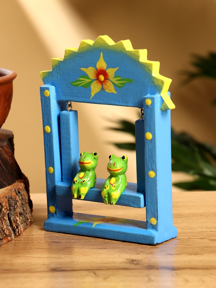 Сувенир «Лягушата на качелях», 10×3.5×15 см, дерево, голубой