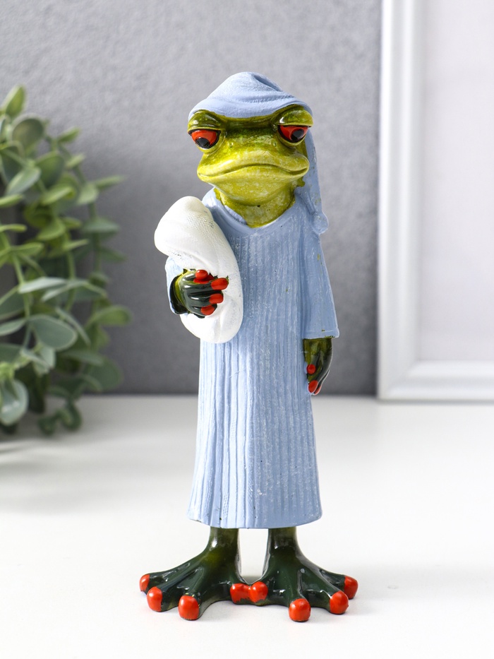 Фигурка полистоун лак «Лягуха с подушкой - бессонница», 7×6×16.5 см