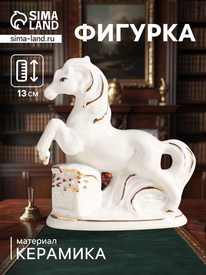 Фигурка керамика «Конь с подарком», белый с золотом, 6.5×5.5×7.5 см